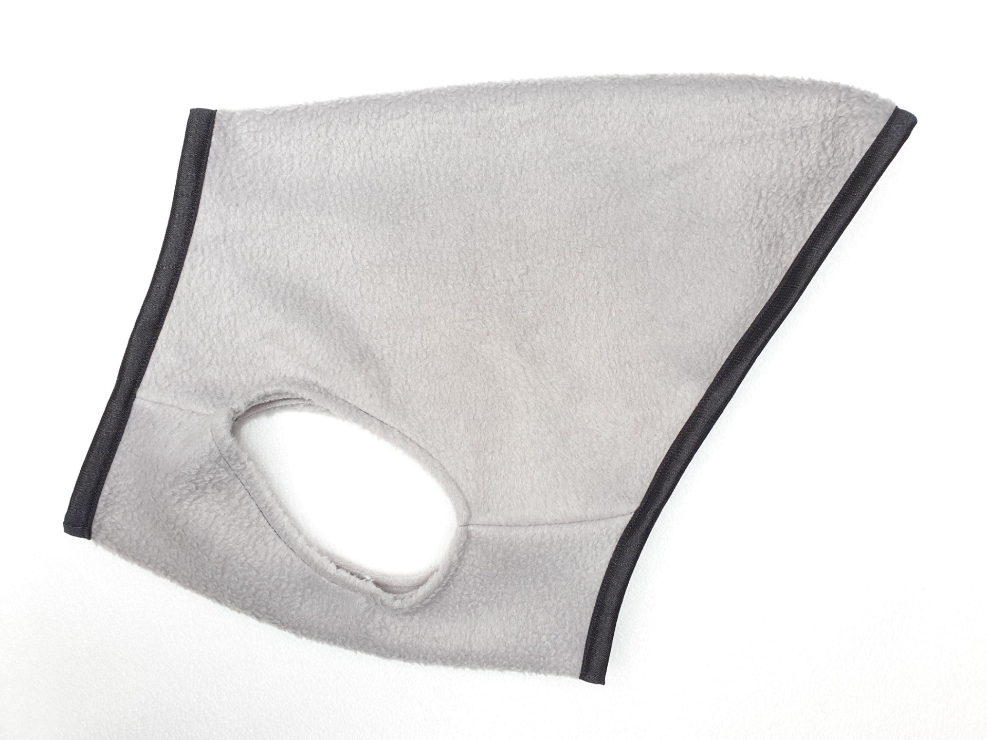 Deze comfi sweater in fleece is aan 1 kant te dragen. Geschikt voor een nekomvang van maximaal 45cm, buikomvang van maximaal 63cm en de ruglengte is 35cm.
