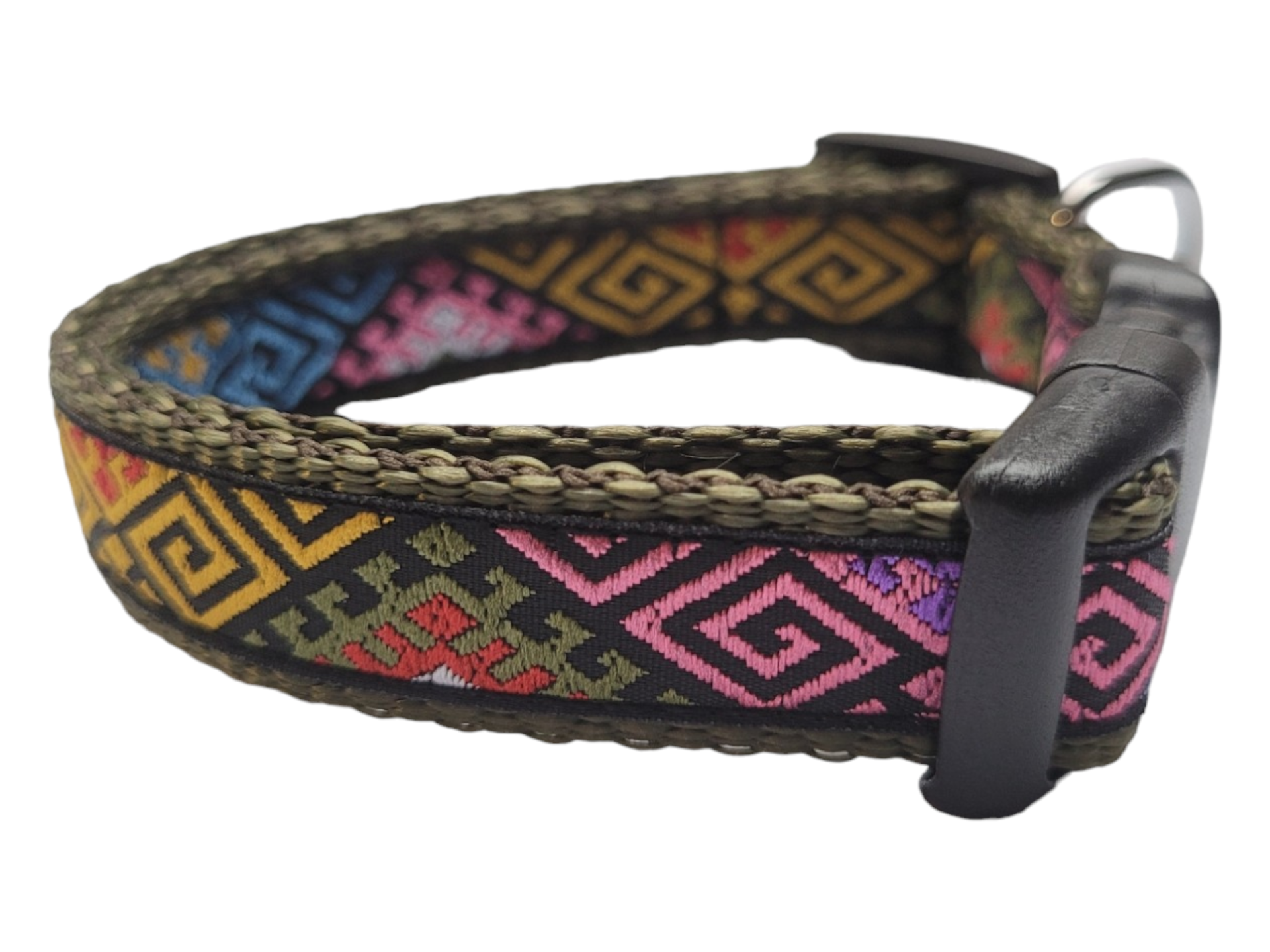De halsbandjes zijn 15mm breed en verstelbaar van circa 22-35cm in maat M. De halsbandjes zijn gemaakt van stevig maar zacht band met een geweven printje wat deze halsband erg duurzaam en slijtvast maakt.