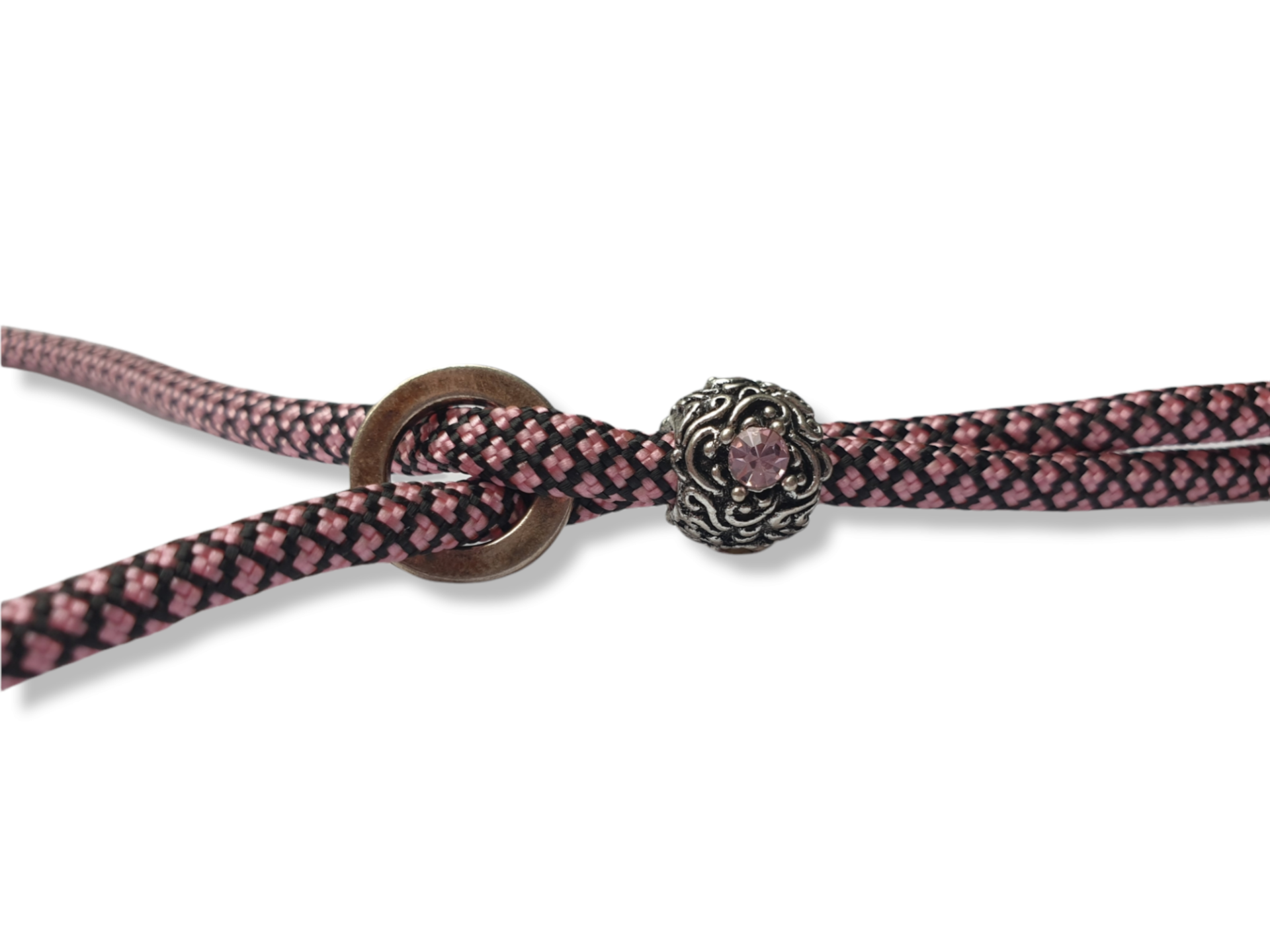 Handige showlijn van 120 cm lang met opvallende strass kraal. De maximale doorgang voor het hoofd is circa 55 cm.