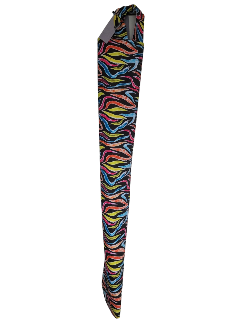 De staartzak is circa 100cm lang en 18cm breed dus geschikt voor dikke staarten van paarden of grote pony's. Je kunt de staartzak vast maken door een invlechtje te maken in het bovenste deel van de staart, waar je de lussen doorheen haalt en vervolgens kunt strikken.