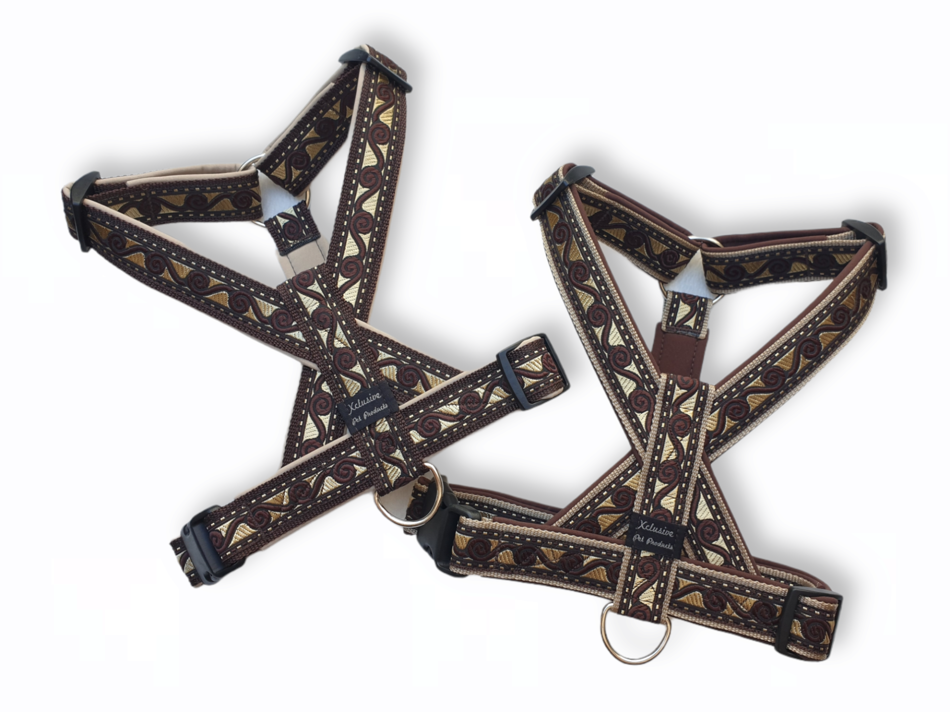 Lees goed de meetinstructie, Hoe stel ik mijn tuigje samen, kleuren effen band en voering bovenaan het pagina overzicht en stel zo jouw unieke tuigje samen!