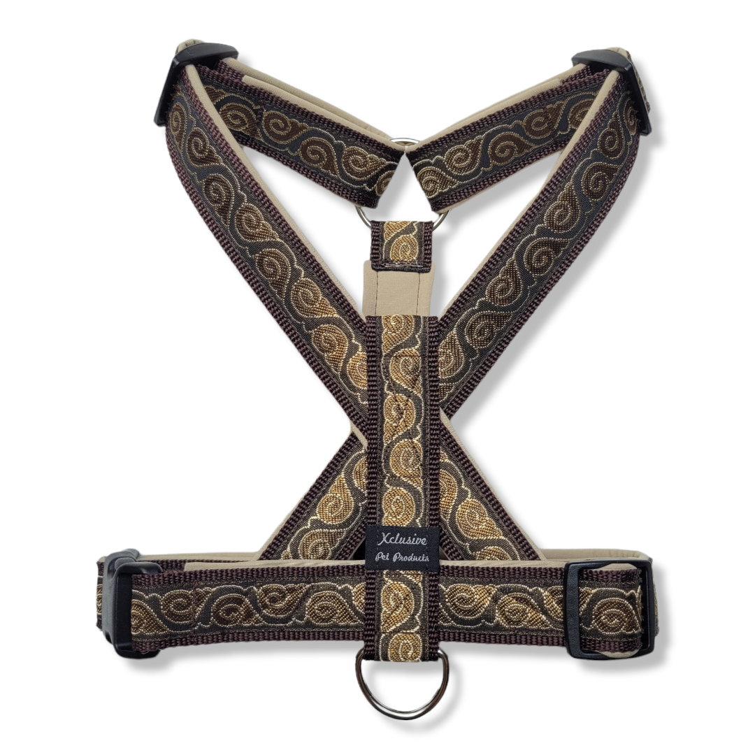 Lees goed de meetinstructie, Hoe stel ik mijn tuigje samen, kleuren effen band en voering bovenaan het pagina overzicht en stel zo jouw unieke tuigje samen!
