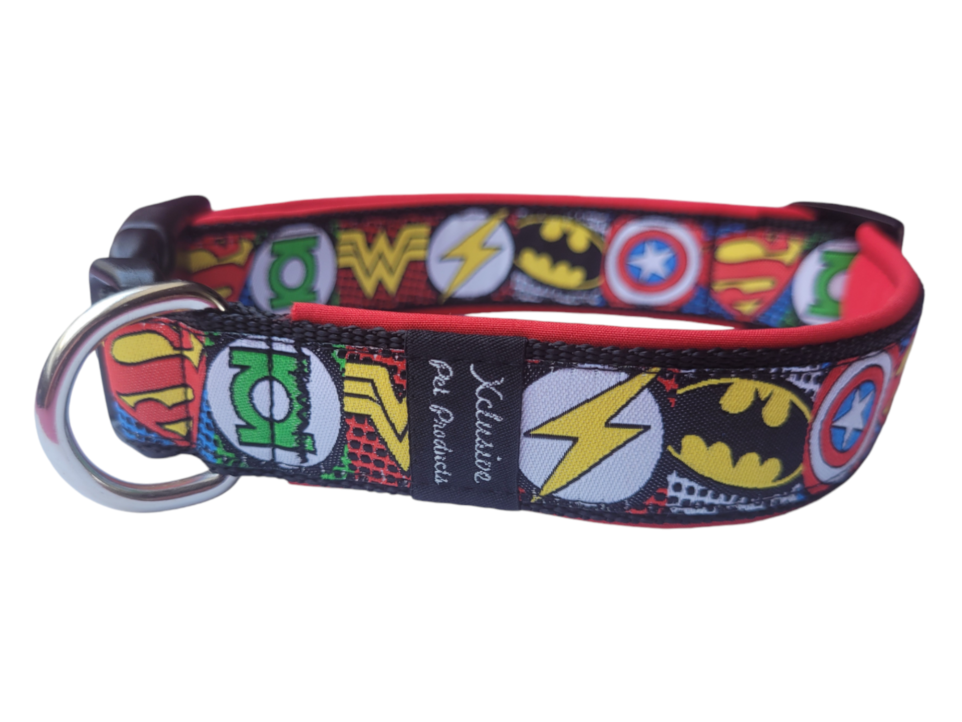 Gevoerde halsband met gave print van ca. 30 mm  breed. De halsband is verstelbaar van ca. 35 - 55 cm.