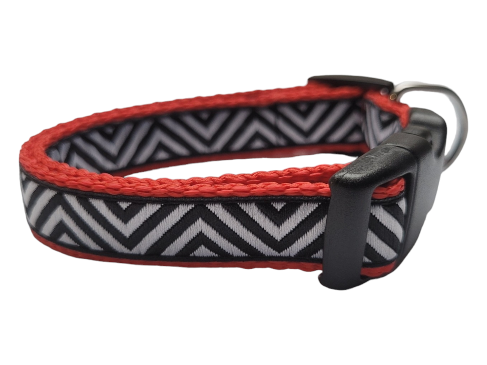 De halsbandjes zijn 15mm breed en verstelbaar van circa 22-35cm in maat M en circa 30-50cm in maat XL. De halsbandjes zijn gemaakt van stevig maar zacht band met een geweven printje wat deze halsband erg duurzaam en slijtvast maakt.