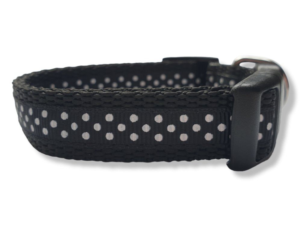 De halsbandjes zijn 15mm breed en verstelbaar van circa 22-35cm.