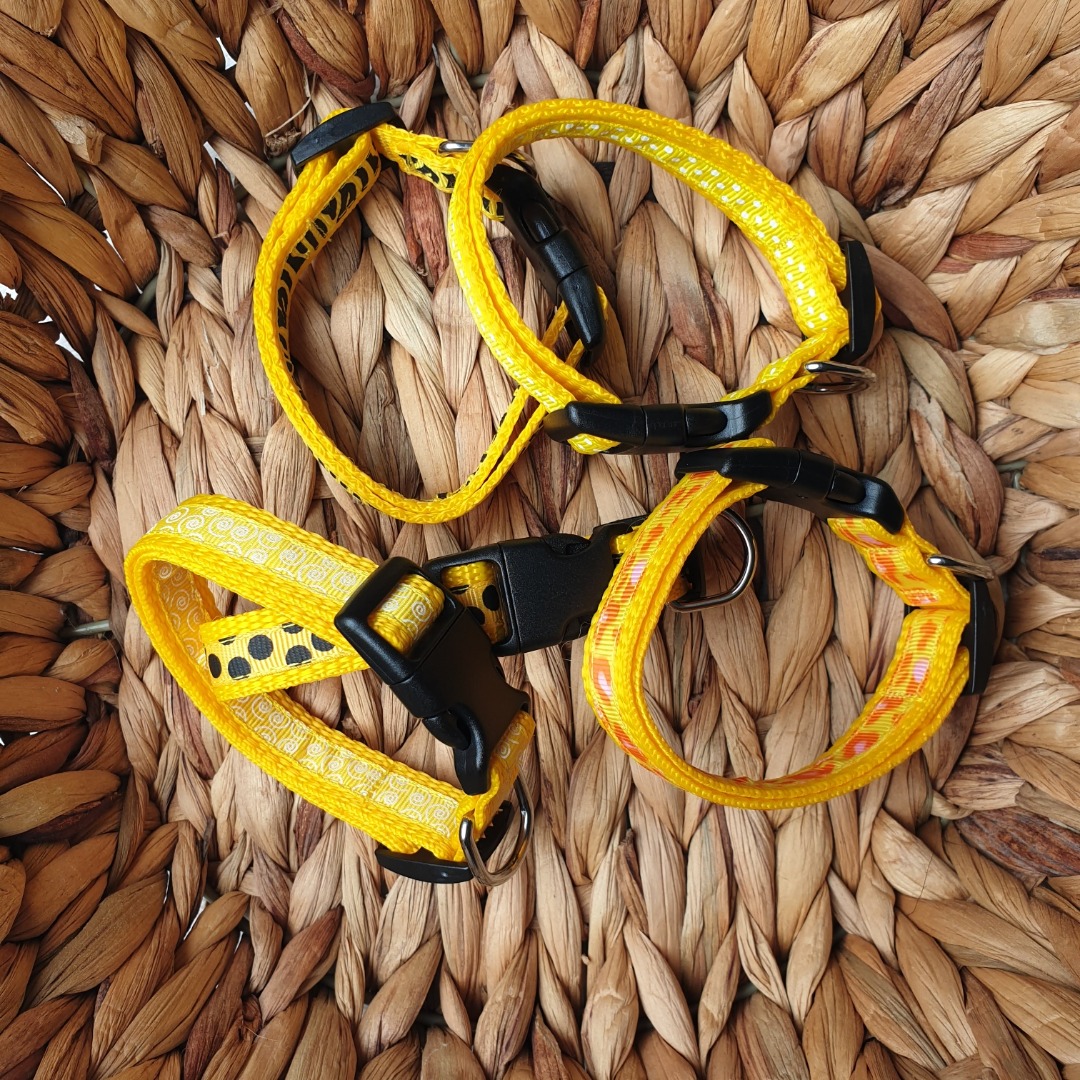 Bij deze halsbandjes is er geen print keuze mogelijk en er kunnen geen bijpassende lijnen bij gemaakt worden. De printjes op de foto's zijn slechts voorbeelden en wisselen regelmatig.