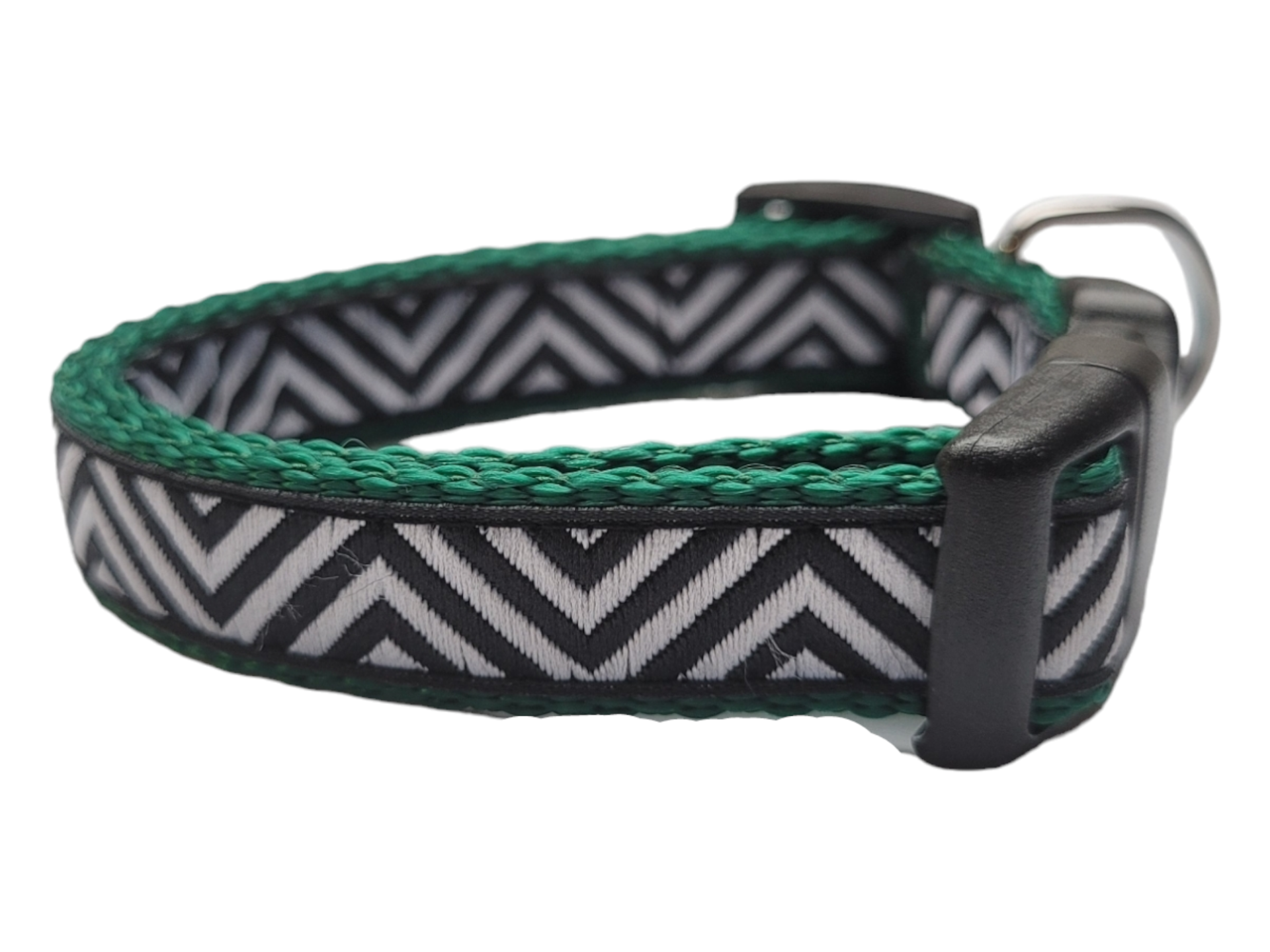De halsbandjes zijn 15mm breed en verstelbaar van circa 22-35cm in maat M. De halsbandjes zijn gemaakt van stevig maar zacht band met een geweven printje wat deze halsband erg duurzaam en slijtvast maakt.