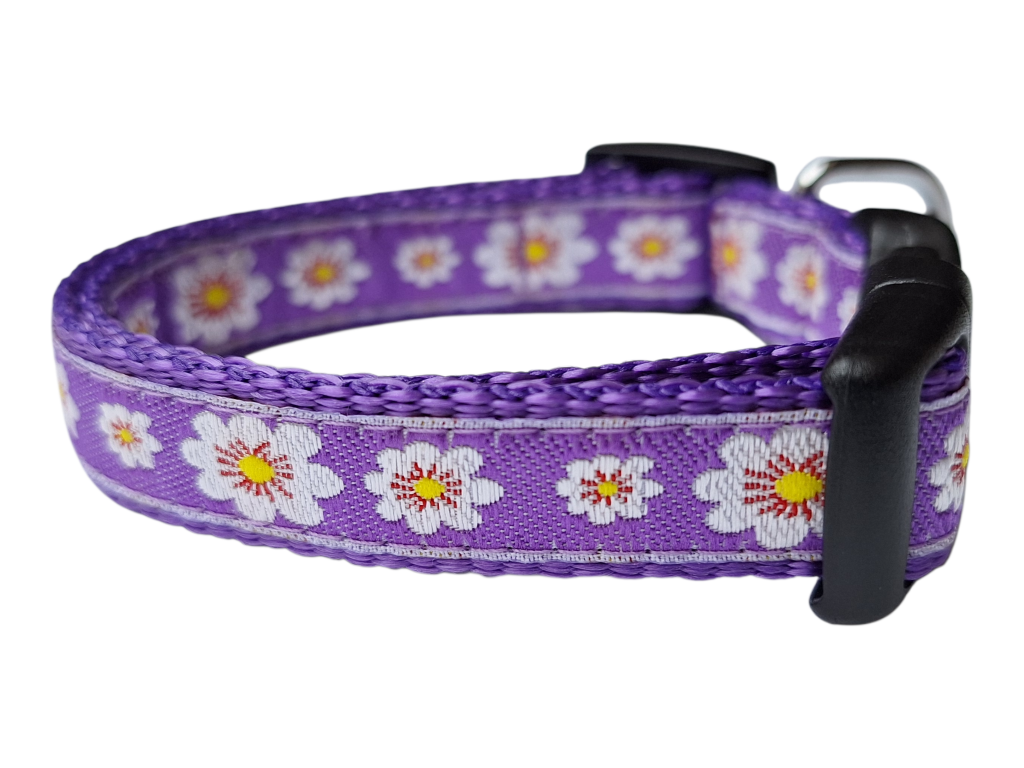De halsbandjes zijn 15mm breed en verstelbaar van circa 22-35cm in maat M. De halsbandjes zijn gemaakt van stevig maar zacht band met een geweven printje wat deze halsband erg duurzaam en slijtvast maakt.