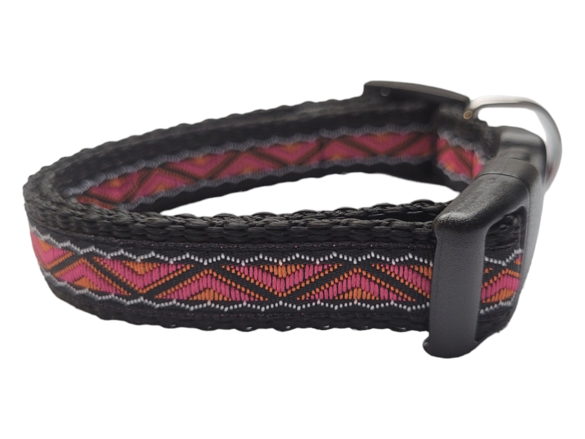 De halsbandjes zijn 15mm breed en verstelbaar van circa 22-35cm in maat M. De halsbandjes zijn gemaakt van stevig maar zacht band met een geweven printje wat deze halsband erg duurzaam en slijtvast maakt.