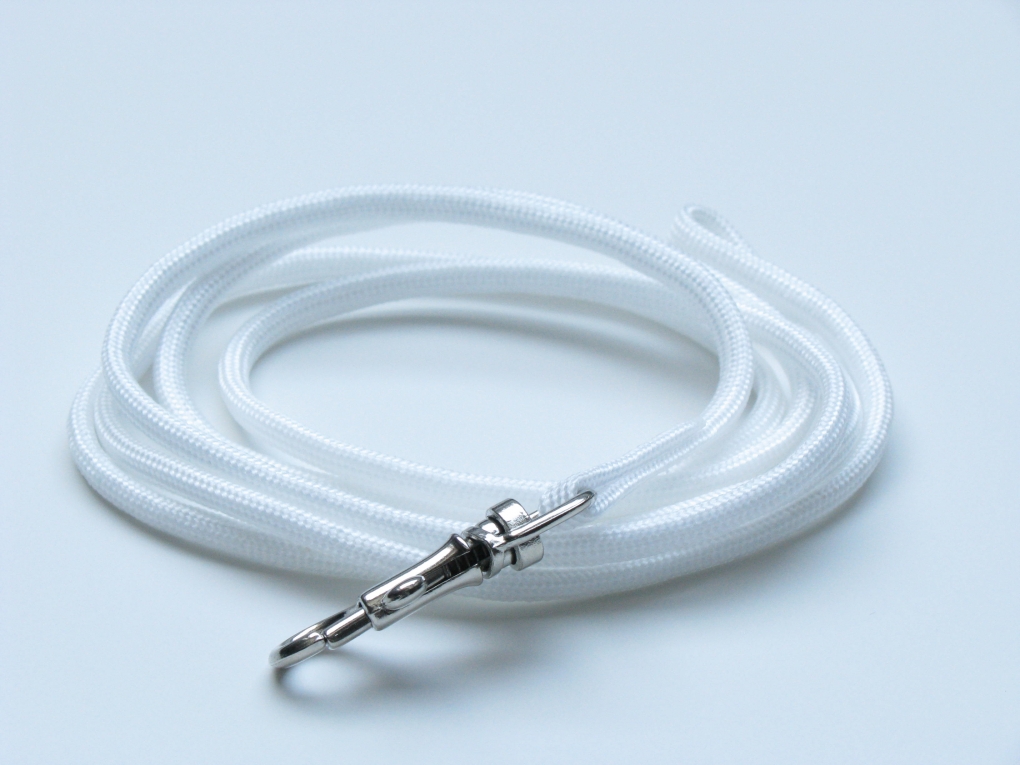 Witte showlijn van 1 meter lang met kleine zilver gekleurde musketon.