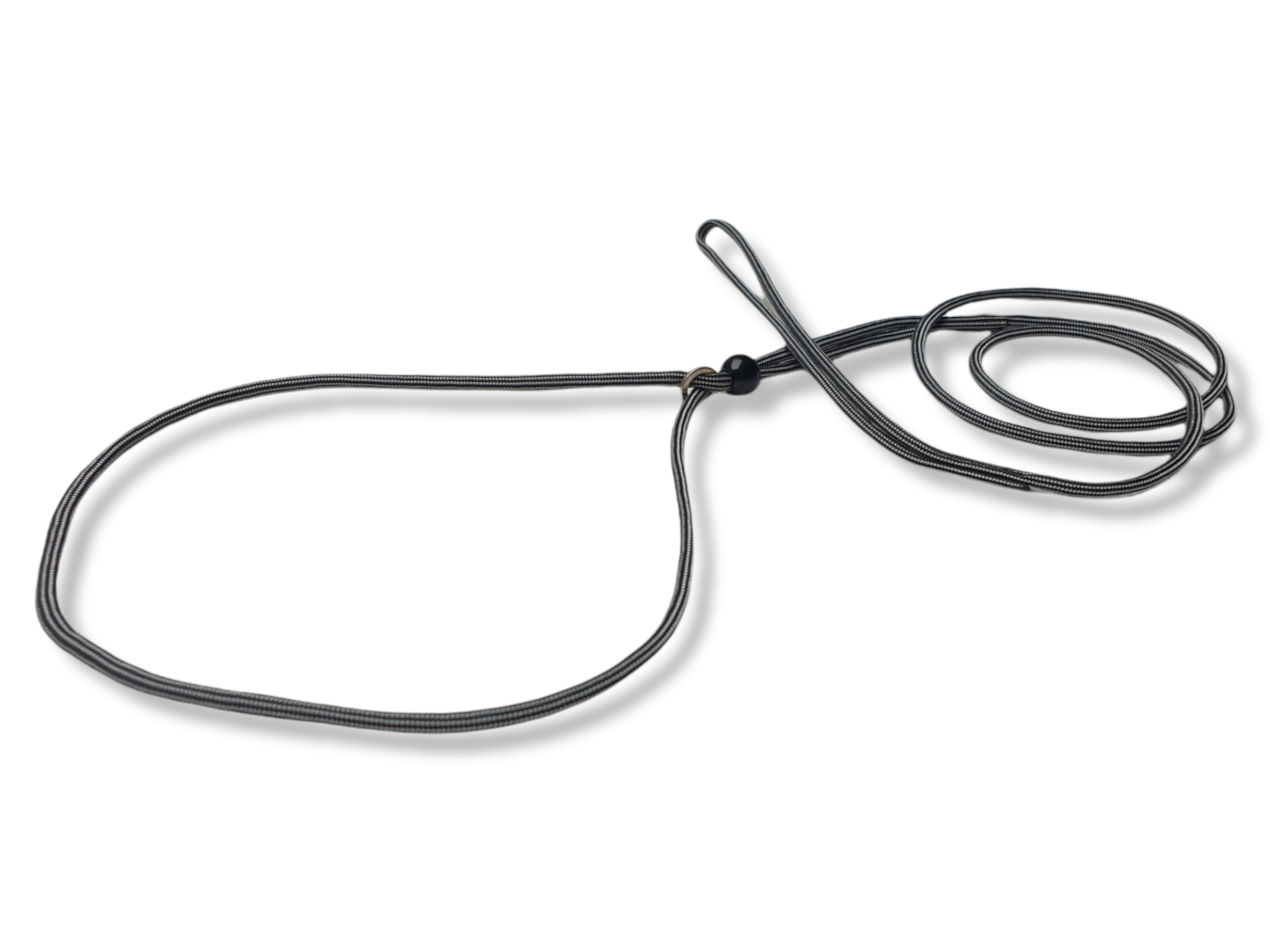 Het ringetje sluit aan in de nek en de kraal voorkomt dat de lijn open schuift.