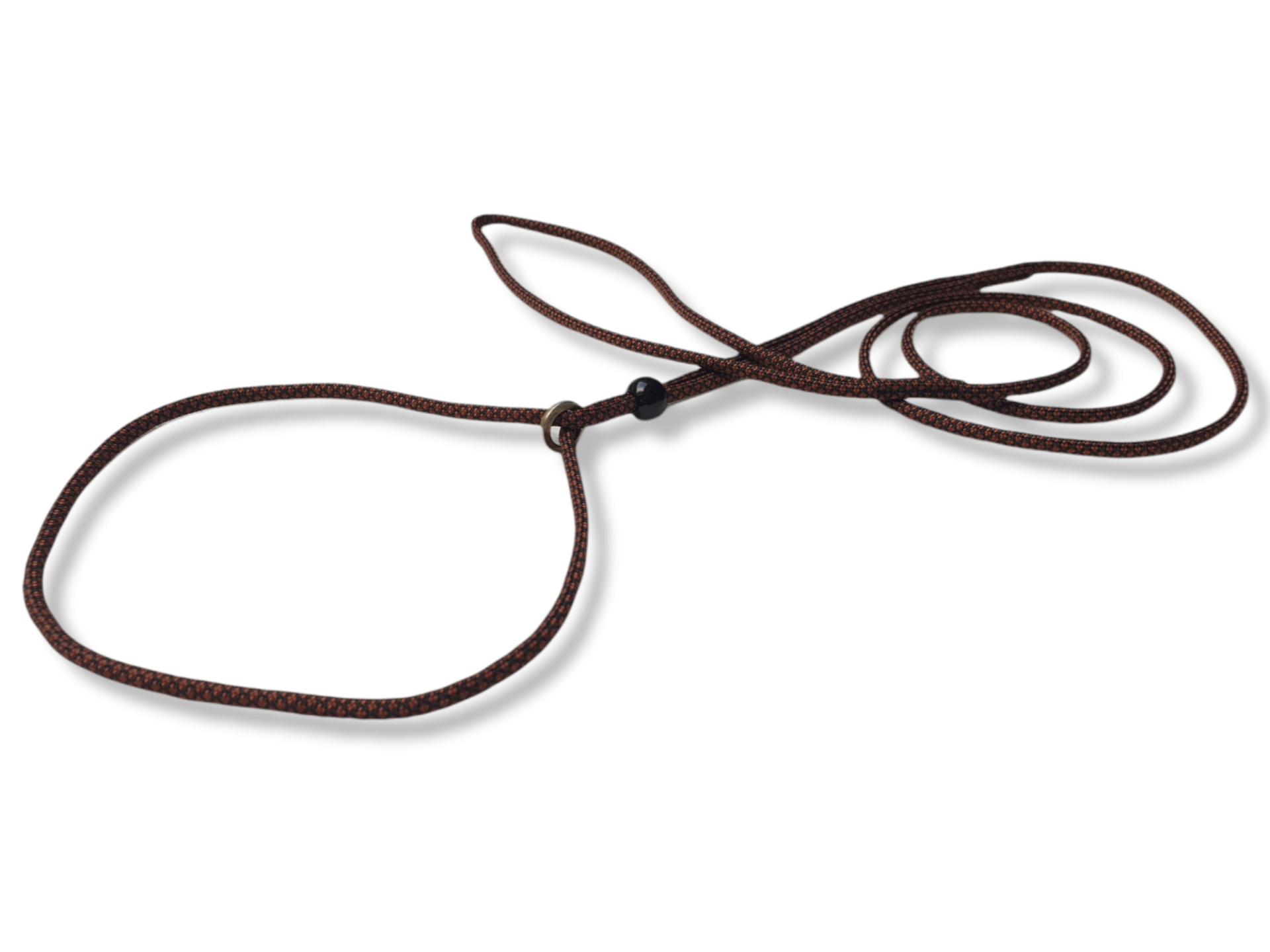Het ringetje sluit aan in de nek en de kraal voorkomt dat de lijn open schuift.