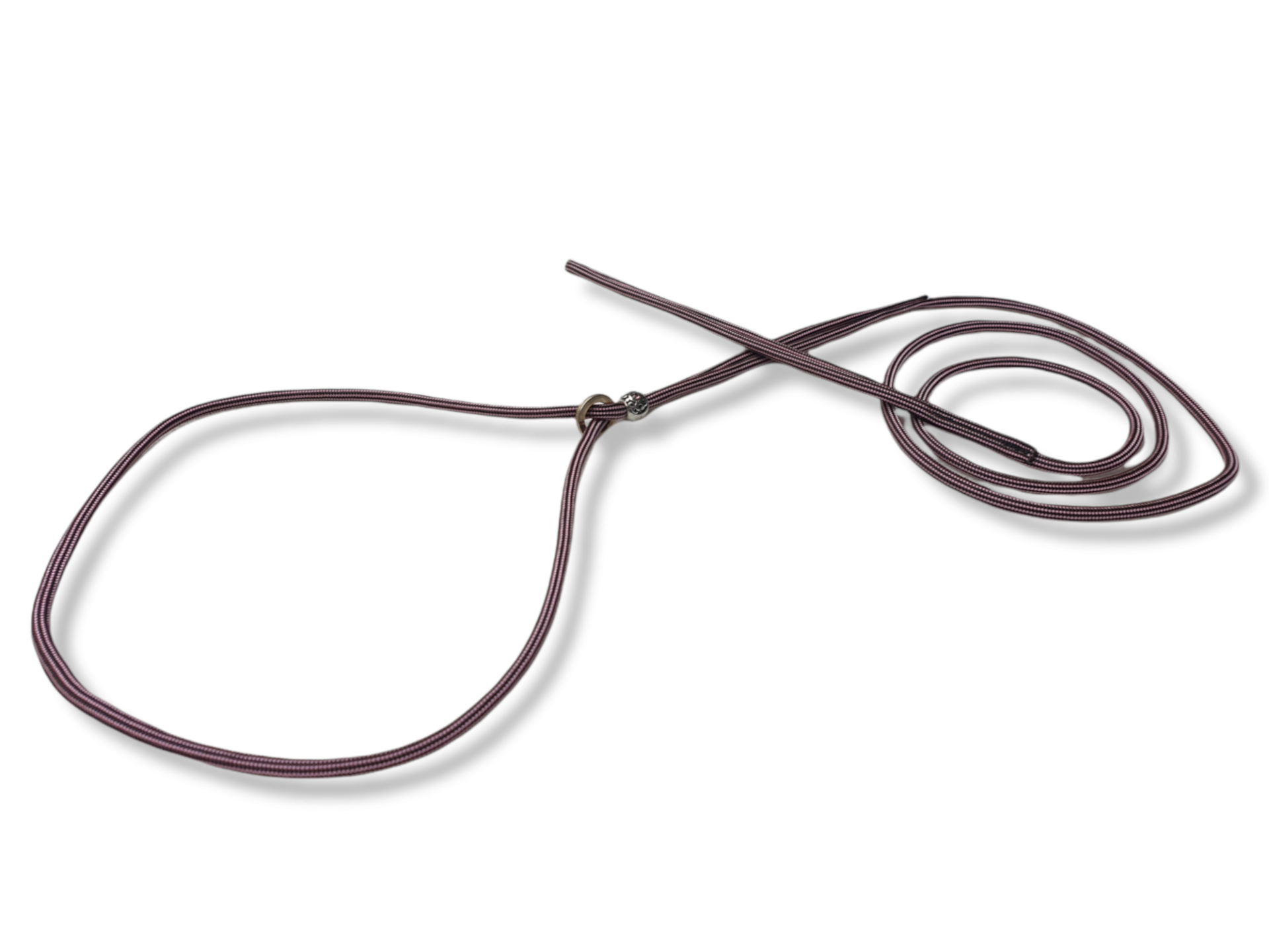 Het ringetje sluit aan in de nek en de kraal voorkomt dat de lijn open schuift.
