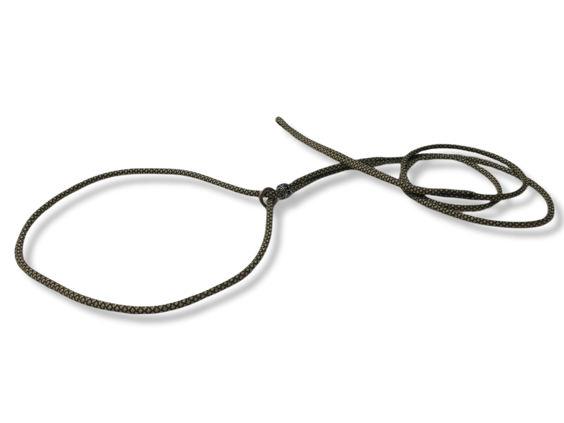 Het ringetje sluit aan in de nek en de kraal voorkomt dat de lijn open schuift.
