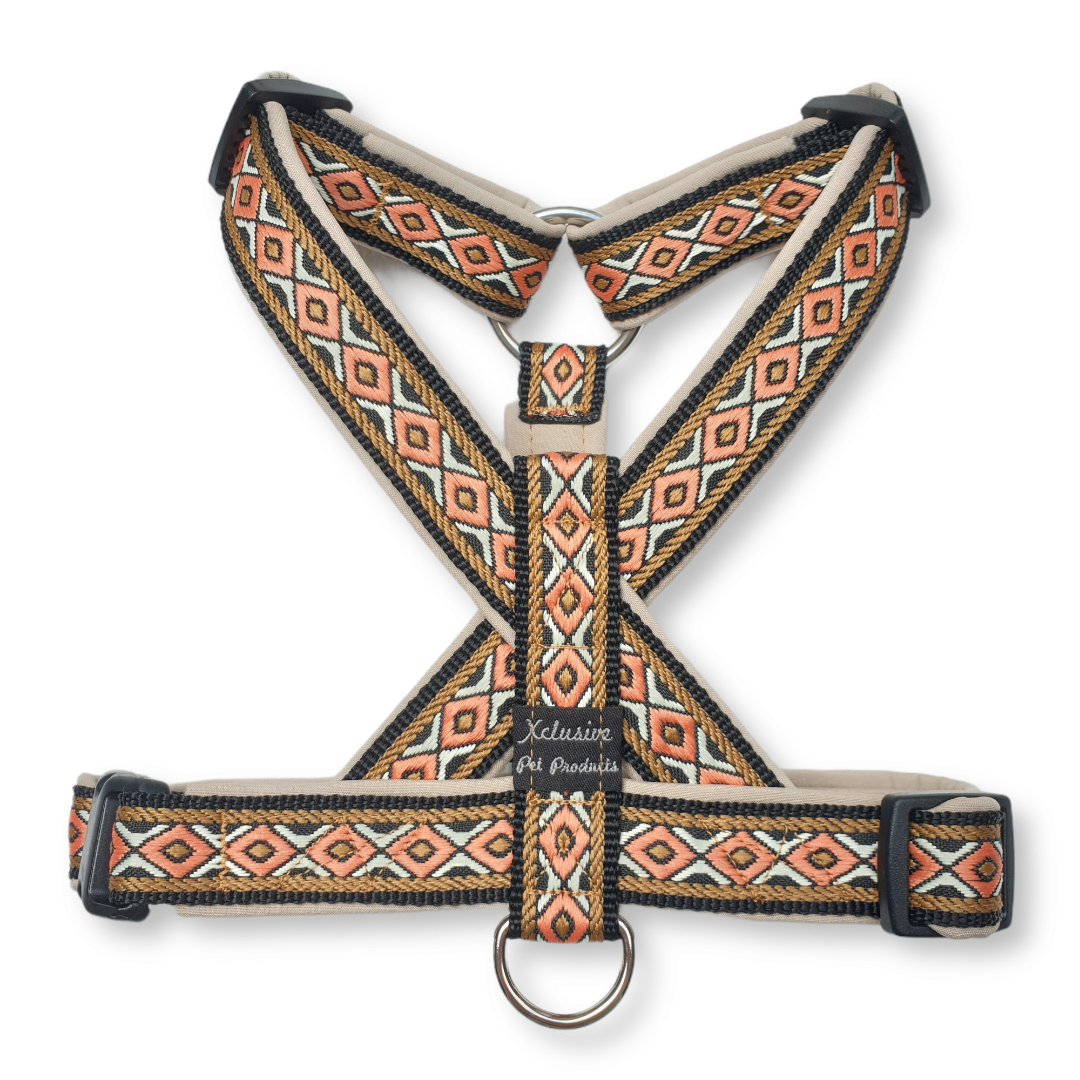 Lees goed de meetinstructie, Hoe stel ik mijn tuigje samen, kleuren effen band en voering bovenaan het pagina overzicht en stel zo jouw unieke tuigje samen!