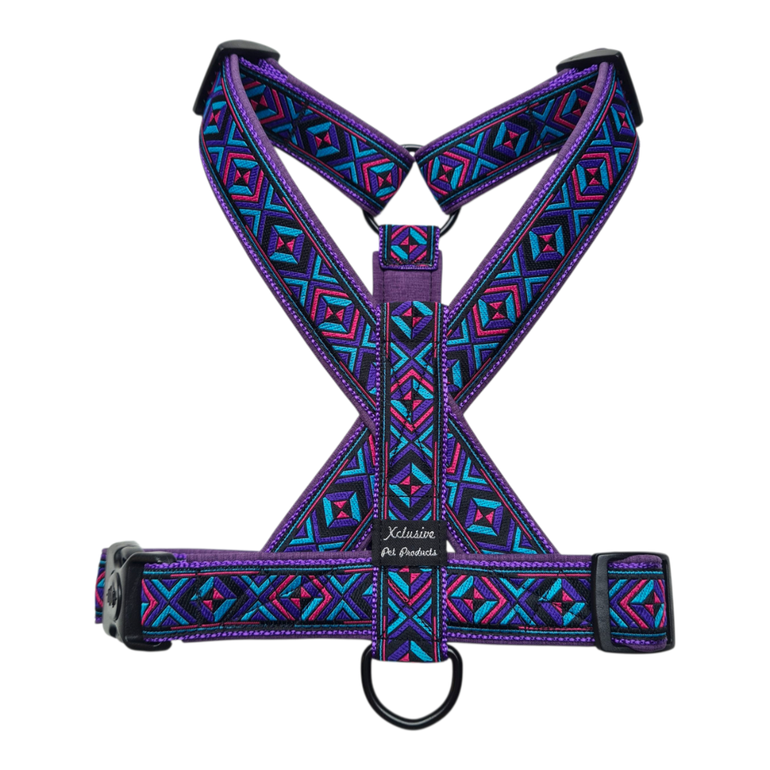 Print voor tuigjes maat m 95 Paars band paars gemĂȘleerde voering Zwart band turquoise voering
