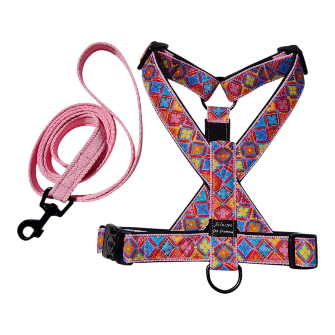 Print voor tuigjes maat m 105 Lichtroze band zwarte voering + supersoft lijn Lichtroze band zwarte voering