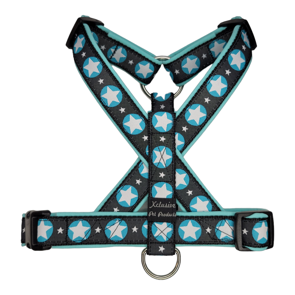 Dit volledig gevoerde tuig van ca 25mm breed heeft een verstelbare hals van 40-55 cm en een verstelbare buikband van 40-55 cm. Kijk bij de meetinstructie hoe je je hond dient op te meten om de juiste maat te bepalen.